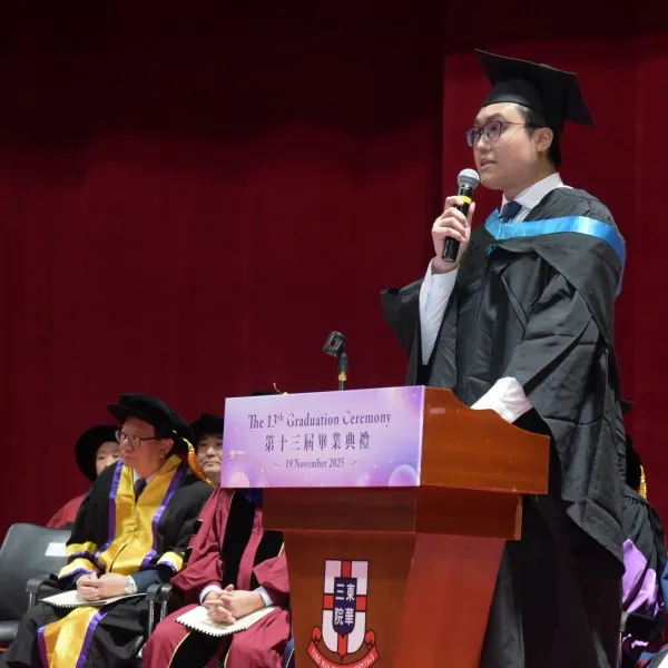 At the Ceremony, four graduates shared their learning journeys at TWC. Among them, Mr. Chan Cheuk Hei, a graduate of the Bachelor of Health Information and Services Management (Honours), reflected on his two years at the College as a senior-entry student, “Through this programme, we gained essential knowledge in healthcare, and more importantly, developed innovative thinking to solve problems.” He spoke about his internship at the Hospital Authority, which provided hands-on experience and deeper insight into healthcare operations. His participation in a study tour to Australia and the opportunity to present his thesis at an international conference in Singapore enriched his academic perspective and inspired his future career goals.