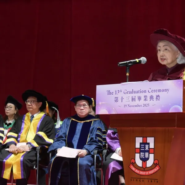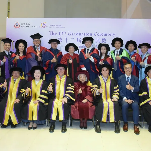 Tung Wah College (TWC) held its 13th Graduation Ceremony at the MacPherson Stadium yesterday (19 November 2025). 977 graduates were conferred with academic awards ranging from Bachelor Degree to Higher Diploma, Diploma and Certificate in various disciplines. The Ceremony was officiated by Mr. Orlando Ho Yau Kai, Chairman of Tung Wah Group of Hospitals (TWGHs) Board of Directors 2025/2026 cum Board of Governors of TWC.