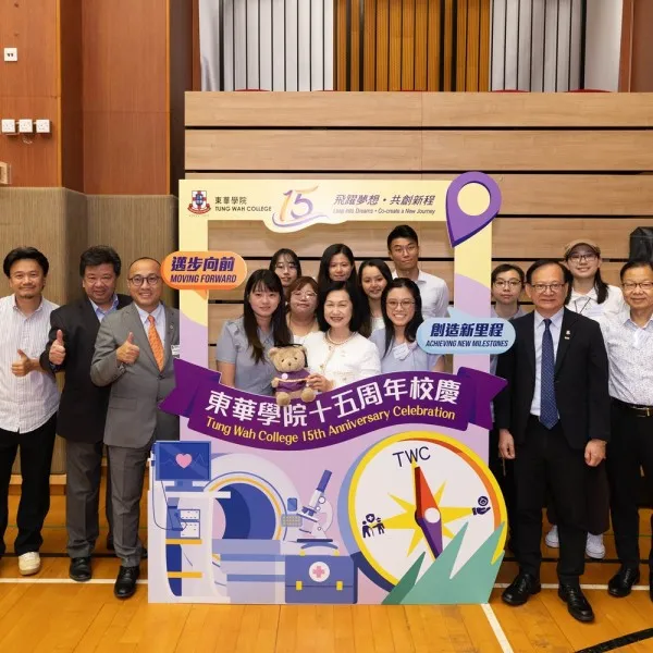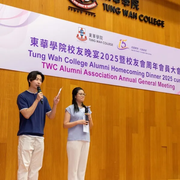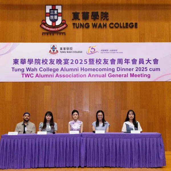 In celebration of its 15th anniversary, Tung Wah College (TWC), together with the TWC Alumni Association (TWCAA), organised the “TWC Alumni Homecoming Dinner 2025 cum Alumni Association Annual General Meeting” on 5 September 2025 (Friday) at the King’s Park Campus. Nearly 100 alumni and teachers attended to mark this milestone occasion.