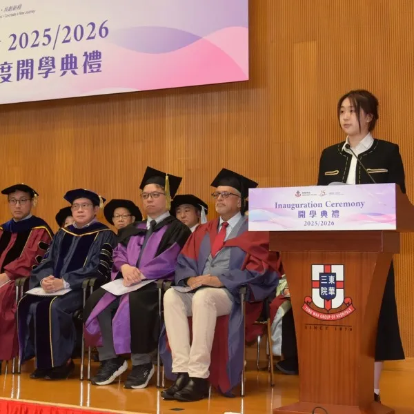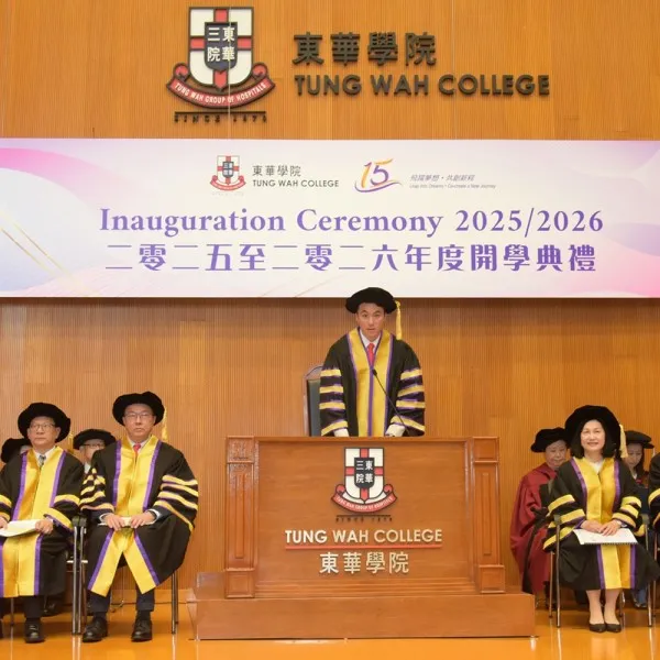 Tung Wah College (TWC) held an Inauguration Ceremony on 29 August for academic year 2025/2026 to welcome 1,686 new students who were admitted to 18 degree, sub-degree and diploma programmes offered by the School of Nursing, School of Medical and Health Sciences, School of Management and School of Arts and Humanities. Despite the decline in student population in Hong Kong, the number of new full-time student intakes was higher than expected with an increase of 11% compared to last year as of 29 August. The number of mainland student intakes increased by 26% compared to last year, reaching a total of 294. The significant increase in student population reflects the academic quality of the programmes offered by TWC is widely recognised and the programmes are able to meet the demands of the society.