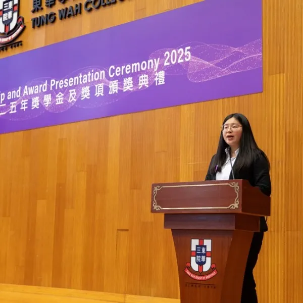 Student representative, Ms. Joanna Tsang, studying for a Bachelor of Health Science (Honours) in Nursing programme, received Tung Wah College Outstanding Student Awards, Global Student Ambassador Award and Reaching Out Award. In her speech, she expressed that receiving these awards is both an affirmation and encouragement of her efforts. Over the past four years, she has gained professional academic knowledge from the programme and accumulated practical experience from the clinical practicum, which has reinforced her determination to become a compassionate nurse. She also expressed gratitude to the College for encouraging students to step out of their comfort zones and discover their potential. By participating in various College’s activities, she believes they are becoming better individuals who care for society, develop leadership skills, and broaden their horizons.