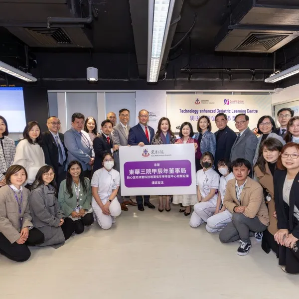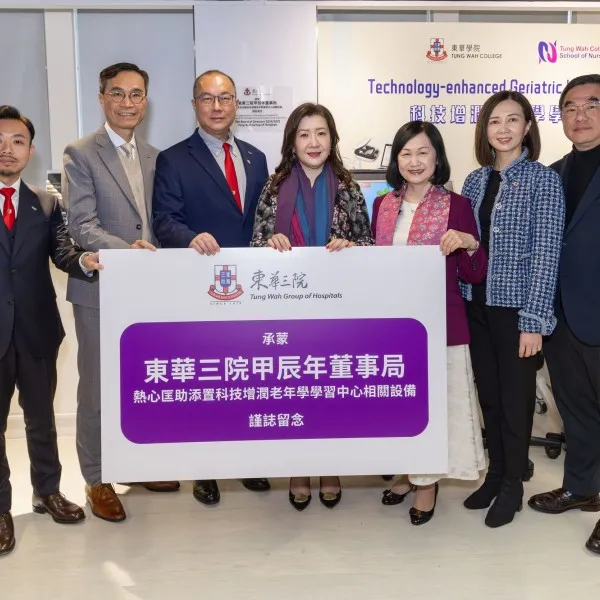 Since its establishment, Tung Wah College (TWC) has received continued support from the Tung Wah Group of Hospitals (TWGHs) to improve its teaching facilities and quality. This year, the College received a generous donation of more than HK$1.6 million from the TWGHs Board of Directors 2024/2025 for the setup of a Technology-enhanced Geriatric Learning Centre at the King’s Park Campus and a Digital Health Laboratory at the Tsim Sha Tsui Campus. These facilities will broaden nursing students’ exposure to the application of gerontechnology devices and will equip students in the Health Information and Services Management programme with digital health technology and data analytics skills.
