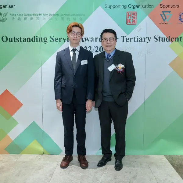 Parco expressed that this award is a recognition of his three years of social service work. He recalled that after completing the HKDSE examination, he initially pursued physiotherapy studies in Australia but was unfortunately forced to suspend his studies for two years in Hong Kong due to the pandemic. By a stroke of luck, he had the opportunity to enrol to the Physiotherapy programme at Tung Wah College and start anew. He expressed deep gratitude to the College and the faculty of the Physiotherapy programme for giving him the chance to return to campus. He said, "As long as I am capable, I will do my best to serve the College, hoping to repay the teachers for their trust and support."