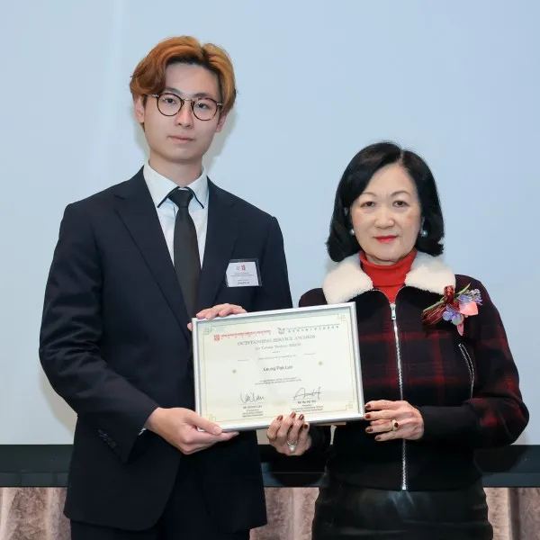 Congratulations to Parco Leung, a Year 3 student in the Bachelor of Science (Honours) in Physiotherapy at Tung Wah College, for being awarded the Outstanding Service Awards for Tertiary Students 2022-23. The award ceremony was held on 26 January, with the Chief Executive of HKSAR, Mr. John Lee Ka Chiu delivering a virtual speech to congratulate the awardees. The awards were presented by the Hon Mrs. Regina Ip, Legislative Council Member. The Outstanding Service Awards for Tertiary Students is jointly organised by the Hong Kong Outstanding Tertiary Students' Services Association and the Hong Kong Student Services Association, aiming to recognise outstanding tertiary students with significant contribution to the community. This year, a total of 20 students received the award.