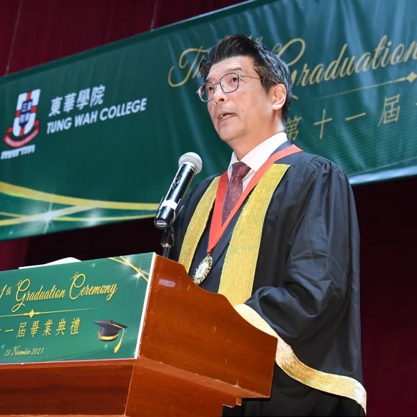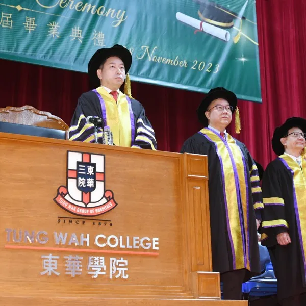 Tung Wah College (TWC) awarded 664 graduates either a Bachelor Degree or Higher Diploma in various disciplines at its 11th Graduation Ceremony held at the MacPherson Stadium on 28 November 2023. The Ceremony was officiated by Mr. Wai Ho Man Herman, Chairman of Tung Wah Group of Hospitals (TWGHs) Board of Directors 2023/2024 cum Board of Governors of TWC.