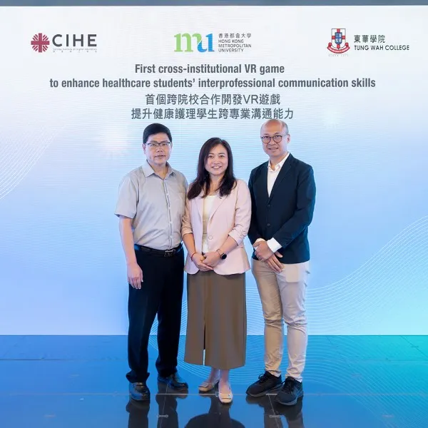 Tung Wah College (TWC), in collaboration with Hong Kong Metropolitan University (HKMU) and Caritas Institute of Higher Education (CIHE), will develop a cross-institutional Virtual Reality (VR) simulation teaching game. The primary goal of the project is to enhance the interprofessional communication skills of approximately 2,800 undergraduate nursing and physiotherapy students from the three self-financing institutions to enable the students to deliver higher-quality healthcare services to patients in the future. The project received a grant of HK$7.97 million from the Quality Enhancement Support Scheme (QESS) under the Government's Self-financing Post-secondary Education Fund. The game is expected to be ready for classroom use in 2025 at the earliest.