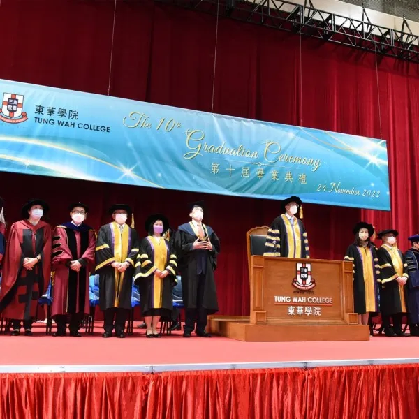 Tung Wah College (TWC) awarded 712 graduates either a Bachelor Degree or Higher Diploma in various disciplines at its 10th Graduation Ceremony held at the MacPherson Stadium on 24 November 2022. The Ceremony was officiated by Mr. Philip Ma, Chairman of Tung Wah Group of Hospitals (TWGHs) Board of Directors 2022/2023 cum Board of Governors of TWC.