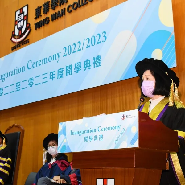 Professor Sally Chan, President of TWC, welcomed at the ceremony all new students who have overcome unprecedented challenges posed by the pandemic for joining the TWC family. Professor Chan encouraged students to exchange their ideas with teachers proactively. “TWC’s incredibly talented academics are renowned experts in their fields and are enthusiastically applying their expertise through scholarship, research, and real-world practice to address the most pressing local, regional and global challenges. They will guide you, and help you open doors to more new possibilities!” Professor Chan also remarked that TWC is still able to attract considerable student applications with its established niche despite the declining HKDSE student population and keen competition in student recruitment among local tertiary institutions, showing that TWC’s programmes are well-recognised by the society, which reaffirms the College’s determination to sharpening its competitive edge and providing tertiary education with higher quality and greater diversity.