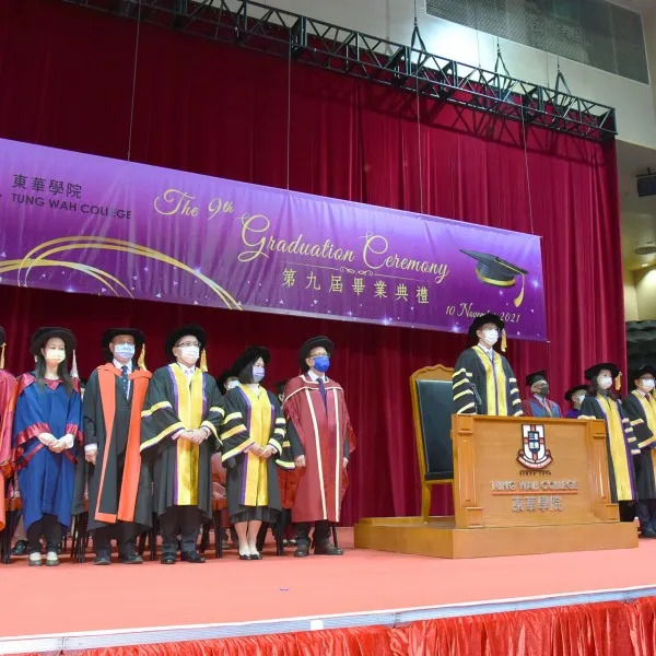 Tung Wah College (TWC) awarded yesterday (10 November) 480 graduates either a Bachelor Degree or Higher Diploma in various disciplines at its 9th Graduation Ceremony held at the MacPherson Stadium. The Ceremony was officiated by Mr. Kazaf Tam Chun-kwok, Chairman of Board of Governors of TWC.