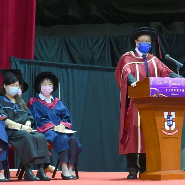 At the Ceremony, two graduates were invited to share their learning experience at TWC. Ong Mun Yi Victoria, graduate of the Bachelor of Medical Science (Honours), expressed her gratitude to her classmates and teachers for their assistance and support which helped her overcoming learning difficulties. She pointed out that with an environment that provides basic and professional biomedical-based knowledge and training, TWC is an ideal place for anyone who wishes to work or study in a biomedical-related field, and thus making her well-equipped to pursue her dream of becoming a doctor. Yam Lok Tung Joyce, graduate of Bachelor of Education (Honours) in Early Childhood Education, said that she has the chance to get to know her best teachers and friends at TWC and has developed close relationship with them. Without their support, she would not be able to make it through the practicum during the pandemic. She recommended graduates to keep in touch with teachers by joining the alumni network.