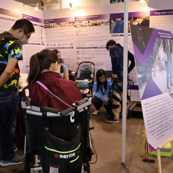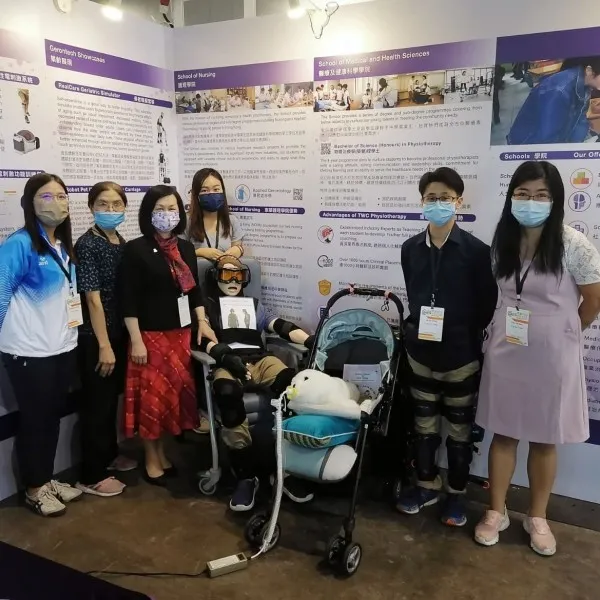 TWC participates in the Gerontech and Innovation Expo cum Summit (GIES) 2021 on 3-6 November 2021 at Hong Kong Convention and Exhibition Centre. Our teachers and students from Nursing, Physiotherapy and Applied Gerontology programmes introduce innovative technologies for the ageing population to the public, such as “RealCare Geriatric Simulator” to foster empathy, “Robot Pet (PARO) to provide emotional support, “Functional Electrical Stimulation System” to improve walking ability of people with disabilities, “Transcranial Stimulation System” to promote motor recovery in patients with neurological conditions, and “Knee Exoskeleton” to improve the walking ability of elderly who have weakness in the knee muscles, etc.