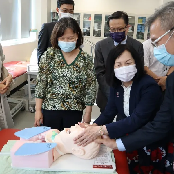 Professor Anthony Cheung, GBS, JP, Chairman of the Committee on Self-financing Post-secondary Education, and members from the Committee, Mr. Esmond Lee, JP, Deputy Secretary for Education, Education Bureau and Mr. Albert Chow, Executive Director of The Hong Kong Council for Accreditation of Academic and Vocational Qualifications (HKCAAVQ), paid a visit to TWC on 30 September 2021. The guests were received by Professor Sally Chan, President of TWC, for a tour of a wide range of learning facilities including the physiotherapy and nursing laboratories and were updated with the latest development of the College.