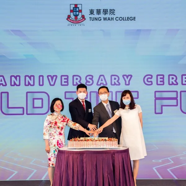 The year-round anniversary celebration of Tung Wah College (TWC) concluded successfully after the 10th Anniversary Ceremony was held at Hotel ICON on 31 May 2021. The Ceremony was officiated by honourable guests, including Mr. Kevin Yeung Yun-hung, JP, Secretary for Education; Mr. Kazaf Tam Chun-kwok, Chairman of Tung Wah Group of Hospitals (TWGHs) Board of Directors 2021/2022 cum Chairman of Board of Governors of TWC; Mrs. Viola Chan Man Yee-wai, BBS, Chairman of College Council of TWC and Professor Sally Chan, President of TWC, and symbolised the College’s determination in offering professional programmes by its four Schools, in order to nurture talents and strive for greater achievement on the journey towards better future.