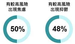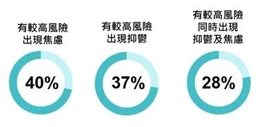 精神健康狀況方面,研究採用醫院焦慮及抑鬱量表(Hospital Anxiety and Depression Scale)進行評估,發現分別有四成及三成七受訪者有較高風險出現焦慮(40%)和抑鬱(37%)的問題,而同時有這兩種精神健康問題的受訪者則約有三成(28%),當中以較年輕組別(35歲以下)的風險最高(50%)。求助意欲方面,願意主動求助的受訪者不足兩成(17%),而高危群組當中願意求助的人亦少於四成(焦慮:37%;抑鬱:35%)。如受情緒或精神健康問題困擾,分別有六成及七成半受訪者表示會向「關係親密的家人」及「關係親密的朋友」求助,有五成會向「心理輔導員」尋求幫助,而每4位受訪者中只有1個表示會向「普通科醫生」求助(24%)。