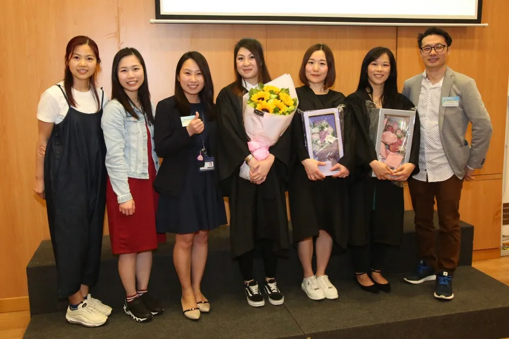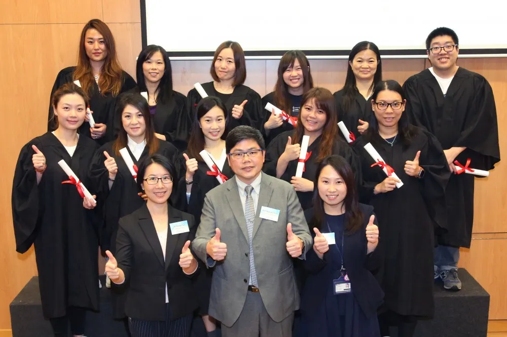 周湛明教授(前排中)、護理學院高級講師兼內視鏡檢查照護證書課程主任麥家葆女士(前排右一)、護理學院助理教授陸喜君博士(前排左一),與一眾畢業生合照。