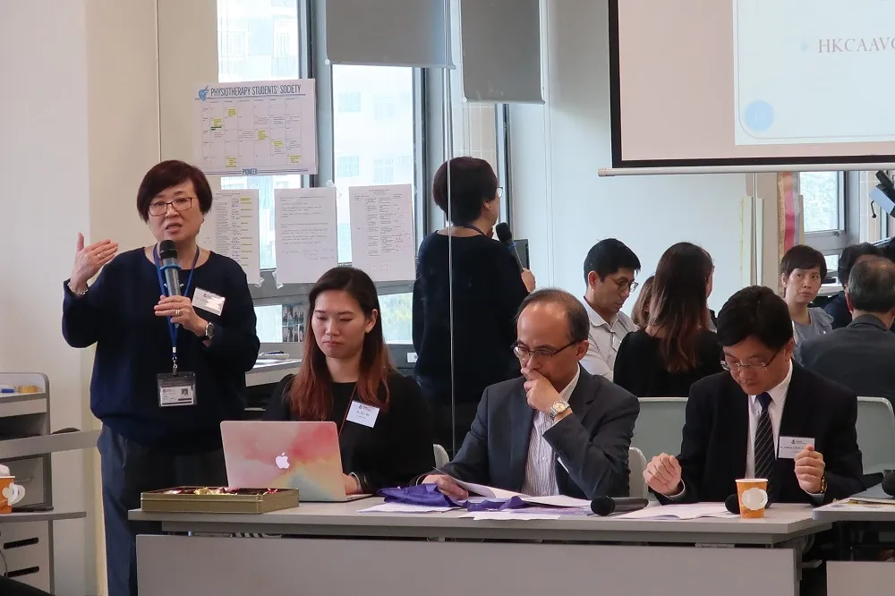 物理治療課程主任司徒佩玉教授向來賓簡介學院課程內容。