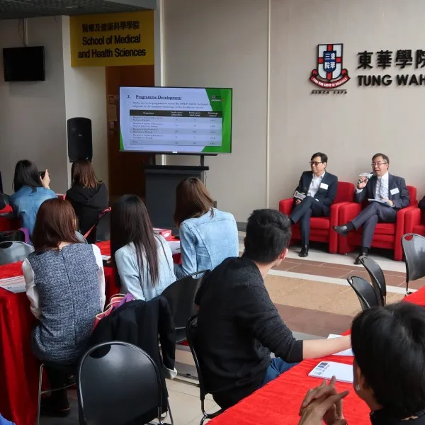 東華學院畢業生向來備受僱主歡迎,校長呂汝漢教授, MH於會上公佈了學院最新一屆畢業生調查結果。根據2017年12月所作的調查,超過九成的受訪者於畢業後成功獲聘或選擇繼續進修,整體平均月薪達港幣$26,500,較2016年畢業生平均月薪$20,062高達三成升幅,反映學院的畢業生在就業市場上的競爭優勢顯著,就業情況理想。醫護界是最多畢業生投身的界別,約為 81%,其次為商界,佔約 7%,教育界佔5%,社區服務界佔3%,其餘4%則投身於批發零售及出入口貿易、政府公務、服務業及其他界別。超過九成受訪者認爲投身的行業與在學院就讀的課程相關,反映學院的課程能裝備年青人投身心儀的職業。