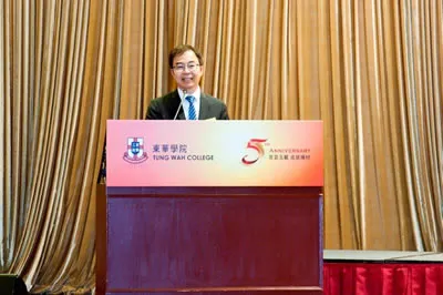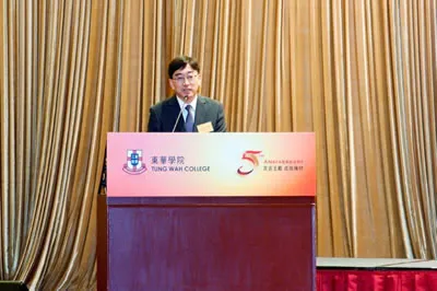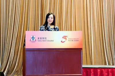 東華三院董事局主席馬陳家歡女士恭賀東華學院成立五周年,並提到:「東華三院一直大力支持東華學院的發展,在學院籌辦初期,東華三院為學院提供校舍及設施以及起動營運資金。在剛過去的2015/2016年度,亦成立了東華三院辦公室實習生協助計劃,為東華學院的學生提供實習機會及在職師友指導。我們期望東華學院可以秉持東華三院「興學育才」的信念,善用本身在醫療,教育,社會福利服務及其他相關範疇的專長和優勢,繼續發展多元化的優質課程,為年青一代提供升學機會。」 校長呂汝漢教授則感謝社會各界人士對學院發展的貢獻,包括特區政府(特別是教育局及食物及衞生局)給予學院的意見和支持;東華三院創立東華學院,在教育方面的承擔,以及高瞻遠矚;專業團體、業界及社會各界(包括香港學術及職業資歷評審局、醫院管理局、香港護士管理局、輔助醫療業管理局及養和醫院等)的支持;校董會及校務委員會的領導和寶貴意見;教職員同事對教育的熱誠和盡責;以及校友及同學對學校發展的付出。展望未來,呂校長承諾:「我們的團隊會盡心盡力,提供優質教育,培育更多人才,為社會作出貢獻,長遠發展成一所具知名度的私立大學。」