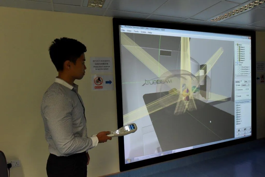 東華學院主修放射治療學學生展示實驗室設施。