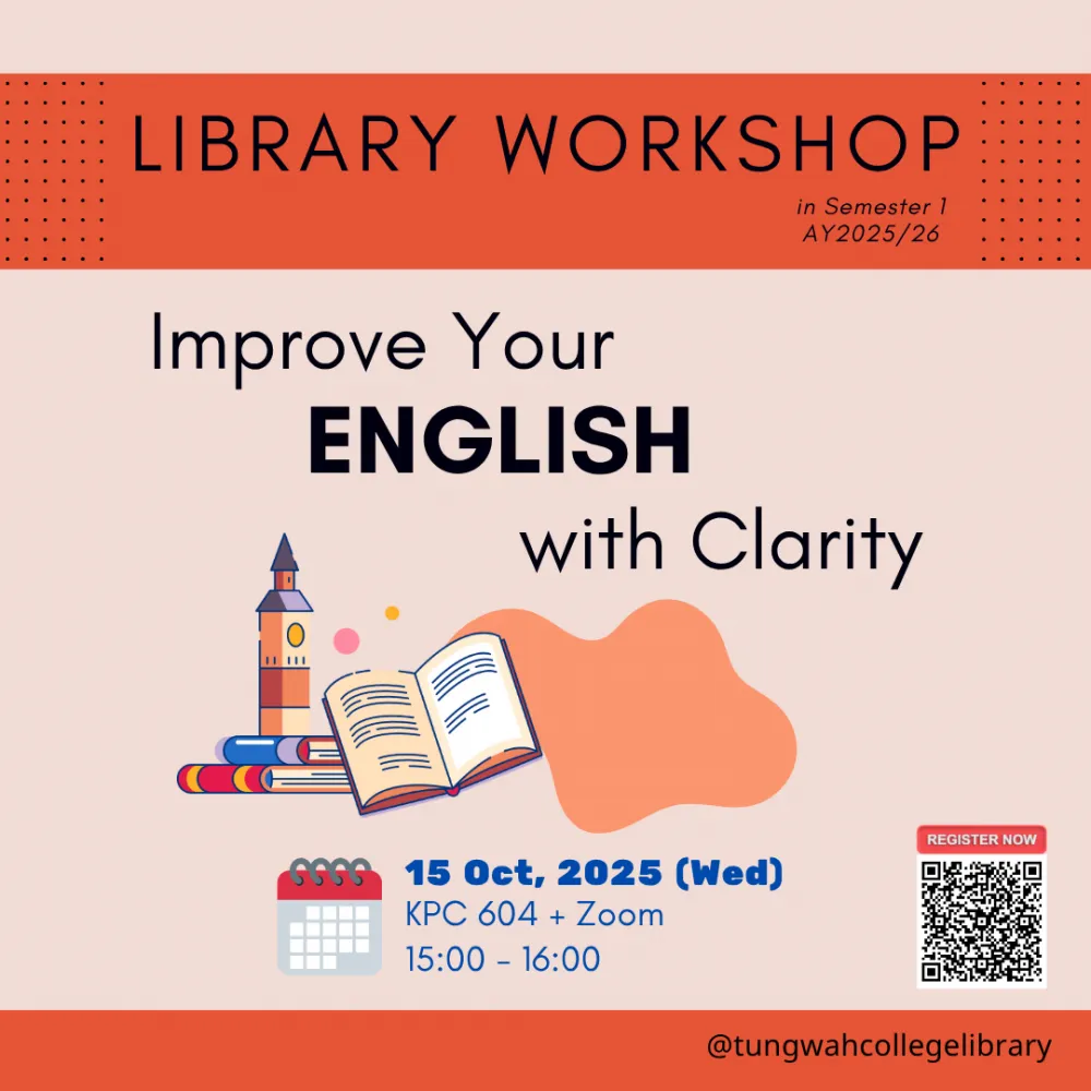 | Have you tried using our digital English language resources? Would you like to practice your grammar, reading and writing skills with interactive learning modules published by ClarityEnglish? Come and join our database workshop. All sessions will be delivered on campus and online via Zoom.