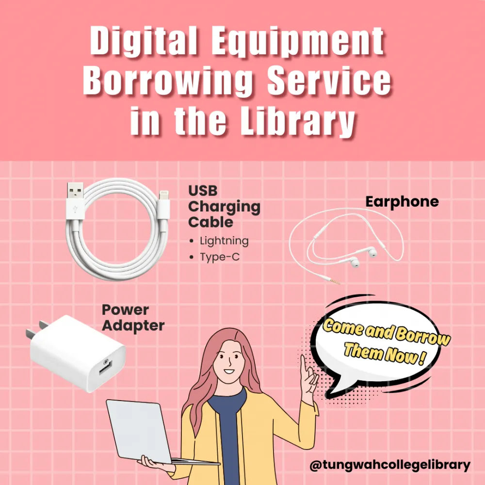 Do you need to take e-lessons or use e-resources for your coursework in the Library? To support your e-learning needs, the Library provides a digital equipment borrowing service to assist your learning and studying activities.