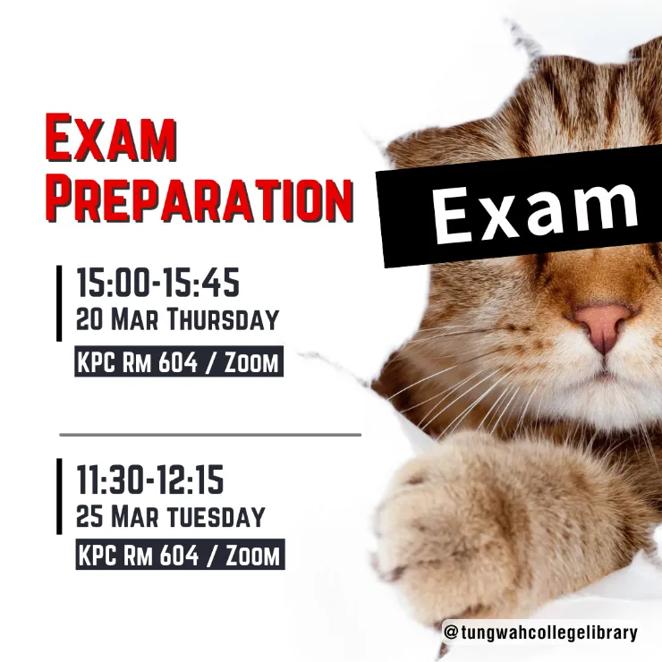 Do you feel difficulties in preparing Final Exam? This Library Workshop will share some useful tips and resources with you on exam preparation.