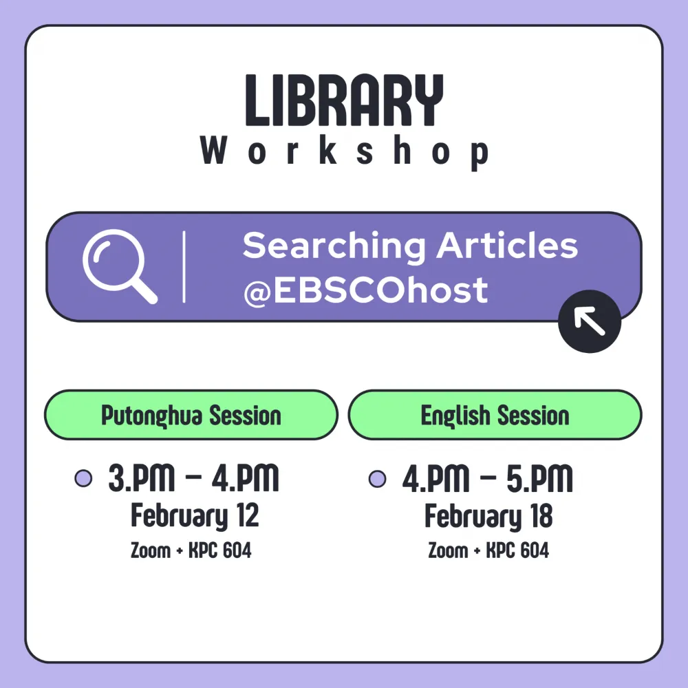 You will have a chance to win a $50 book coupon after joining 3 or more Library Workshops and completing the evaluation form. Click HERE to register now! | |||||||||