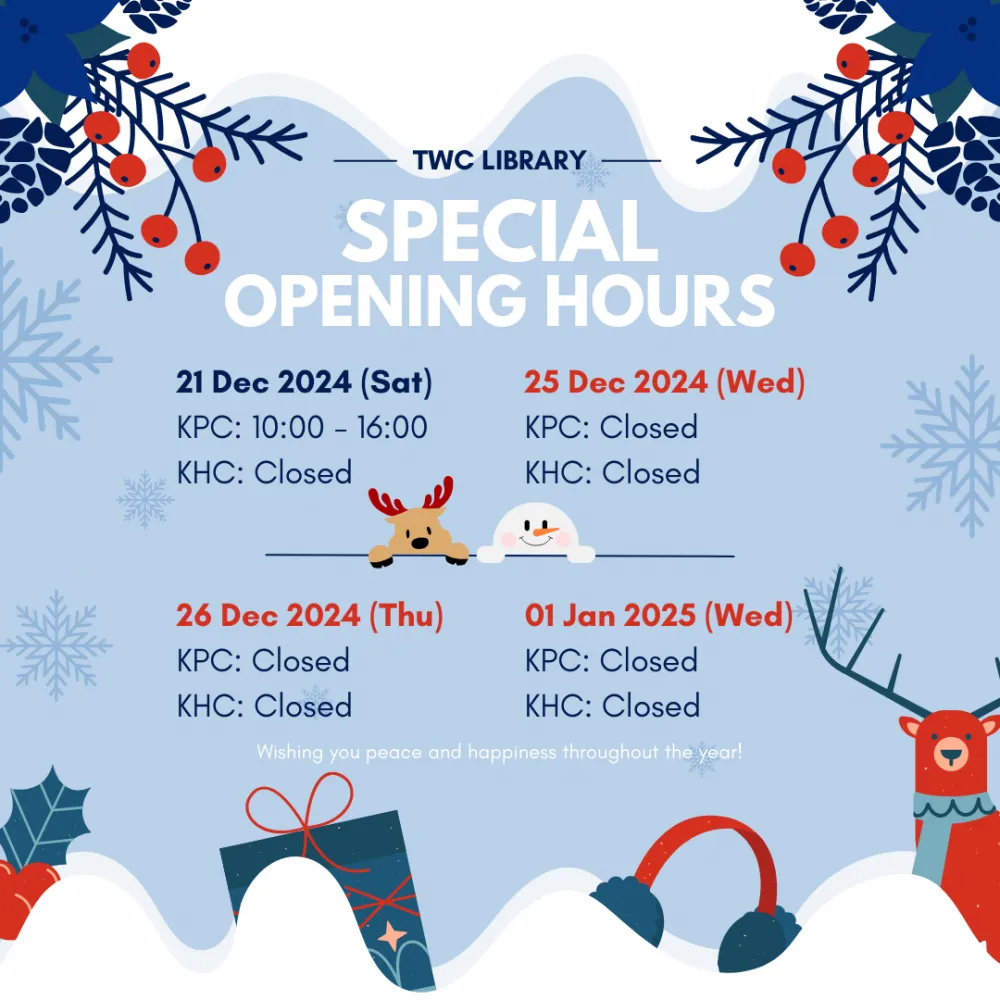 ![]() Christmas is just around the corner and the Library wishes you a joyful holiday and a wonderful New Year! Please note our special opening hours (illustrated above) during the festive season. If you have any enquiry, please feel free to contact us. |