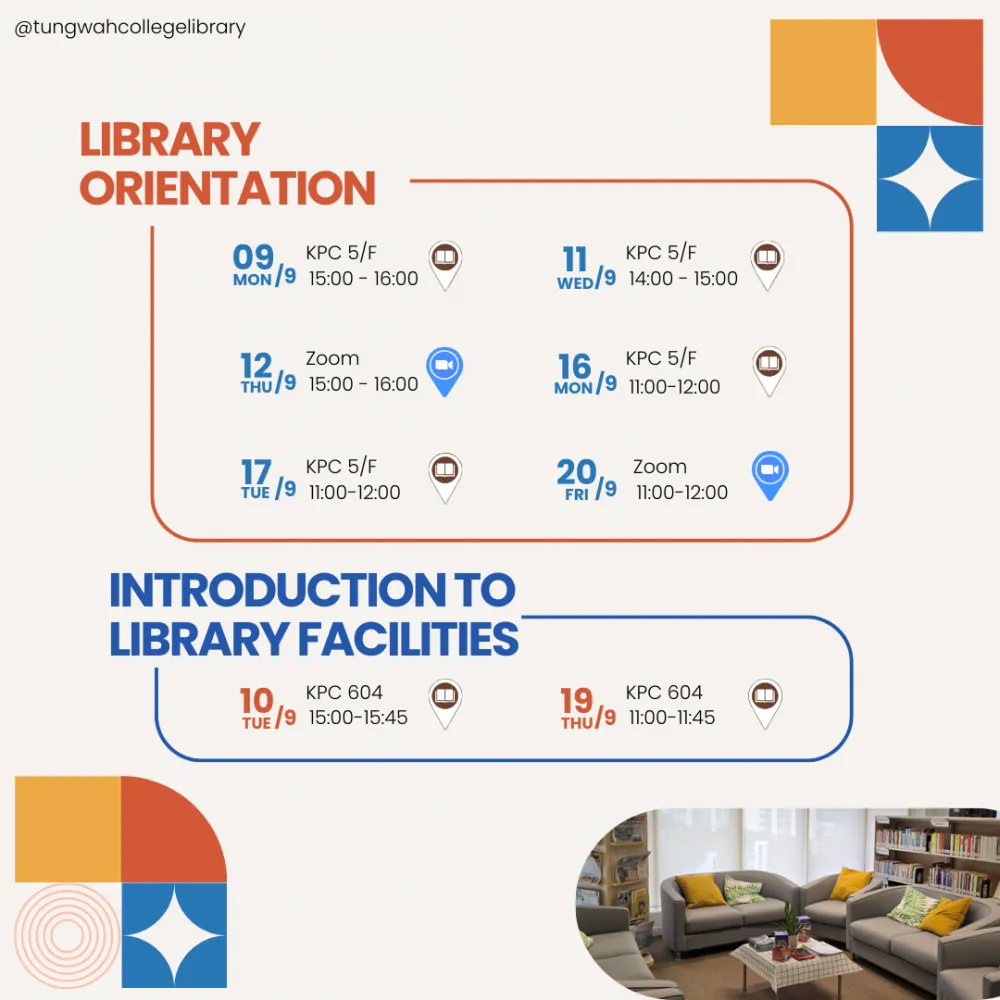 | Library Orientation | 11 Sep 2024 (Wed) | 14:00 - 15:00 | Room 604, KPC Library |