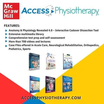 | AccessPhysiotherapy is a comprehensive physiotherapy resource that provides online access to leading McGraw-Hill textbooks, multimedia study aids, and reference guidelines. An interactive cadaver dissection tool entitled “Anatomy & Physiology Revealed 4.0” with 3D rotatable models is also included where you could visualize and observe anatomical details. To learn more about AccessPhysiotherapy, please click here for details. Should you have any questions, please feel free to contact us. |
