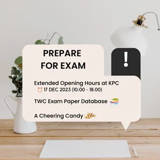 The Final Examination is coming up in next week. Are you preparing for it? Library services and facilities are here to help you during this study and exam period: