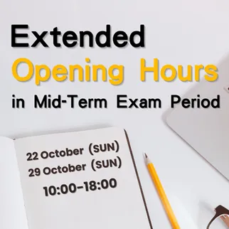The Mid-term Examinations are coming up this Saturday. Are you preparing for them? To facilitate your preparation, the Library at King’s Park Campus would extend the opening hours from 10:00am to 6:00pm on 22 and 29 October 2023 (Sun).