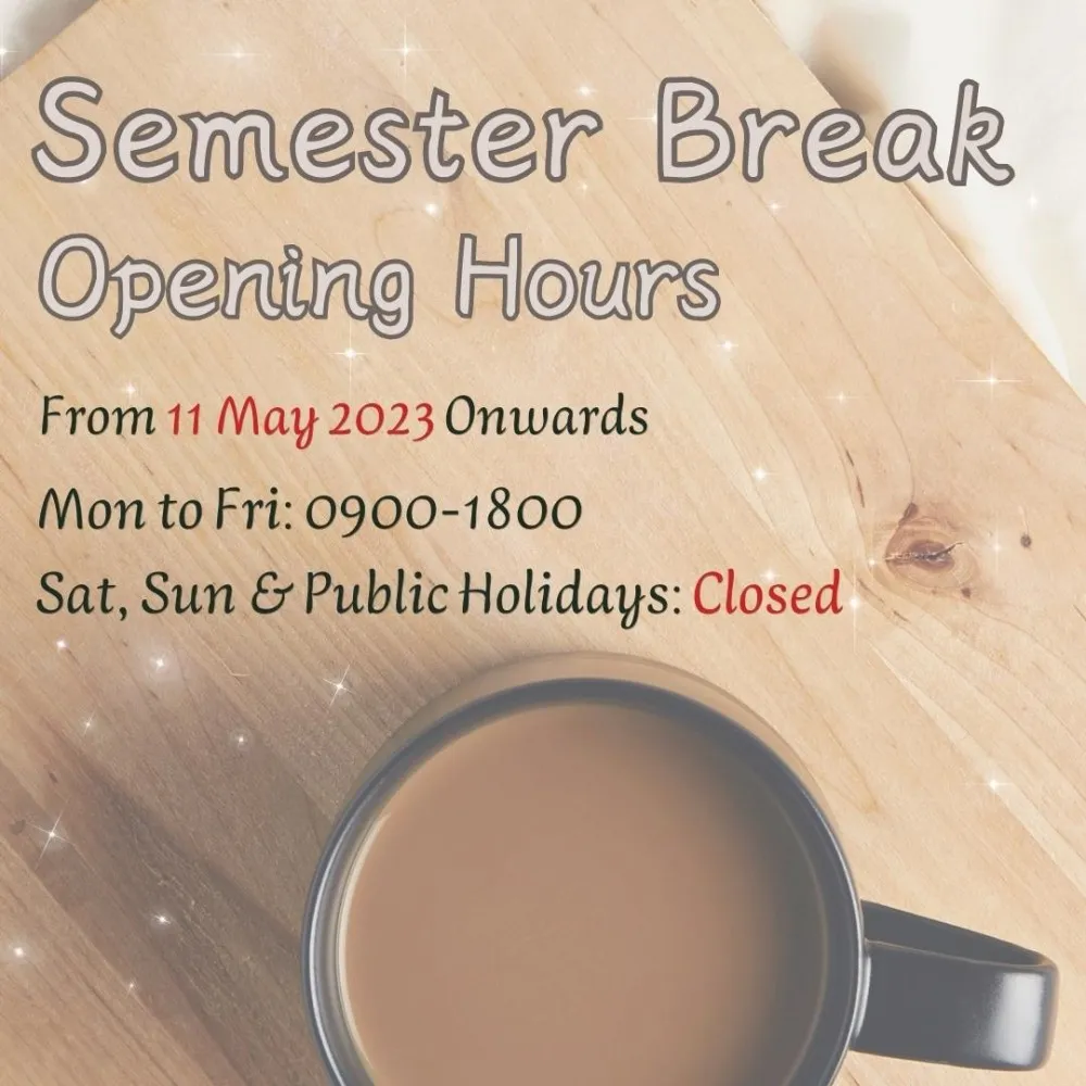 ![]() The last session of the Final Examination will end on 10 May 2023 (Wed). From 11 May 2023 (Thu) onwards, the Library will follow the Semester Break Opening Hours, as shown above. Further details are available at the “Opening Hours” section of the Library website. If you have any enquiry, please feel free to contact us. |