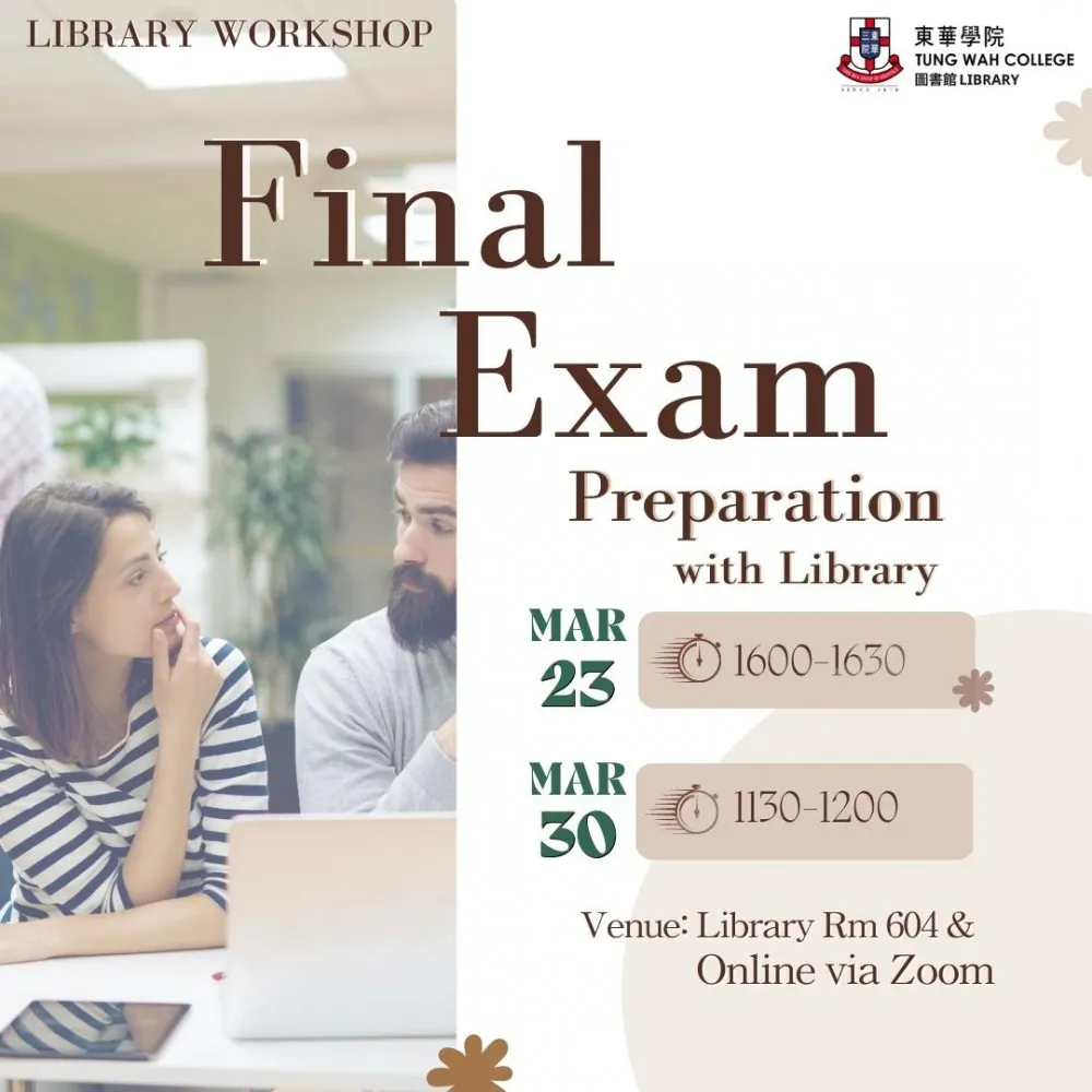 Do you feel difficulties in preparing Final Exam? This Library Workshop will share some useful tips and resources with you on exam preparation.