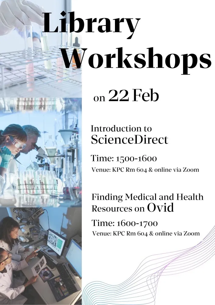 | Need some help in finding academic articles & eBooks? Interested in learning about medical databases and where to find them? Come and join our database workshops. All sessions will be delivered on campus and online via Zoom.