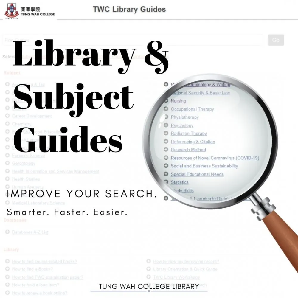 ![]() Writing your paper but not sure how to look for relevant information? Hoping to get inspiration for your research project? The Library Guides covering various topics are created just for you! The Library Guides are about how to use library resources and services effectively and the Subject Guides provide access to relevant books/ebooks, databases & journals and online resources of specific disciplines. All resources are hand-picked by library staff, especially helpful for beginner’s search. Three new subject guides entitled Health Information and Services Management, Foreign Languages and Special Educational Needs have been launched and all guides contain rich information to help your studying/teaching works. What are you waiting for? Try them NOW! |