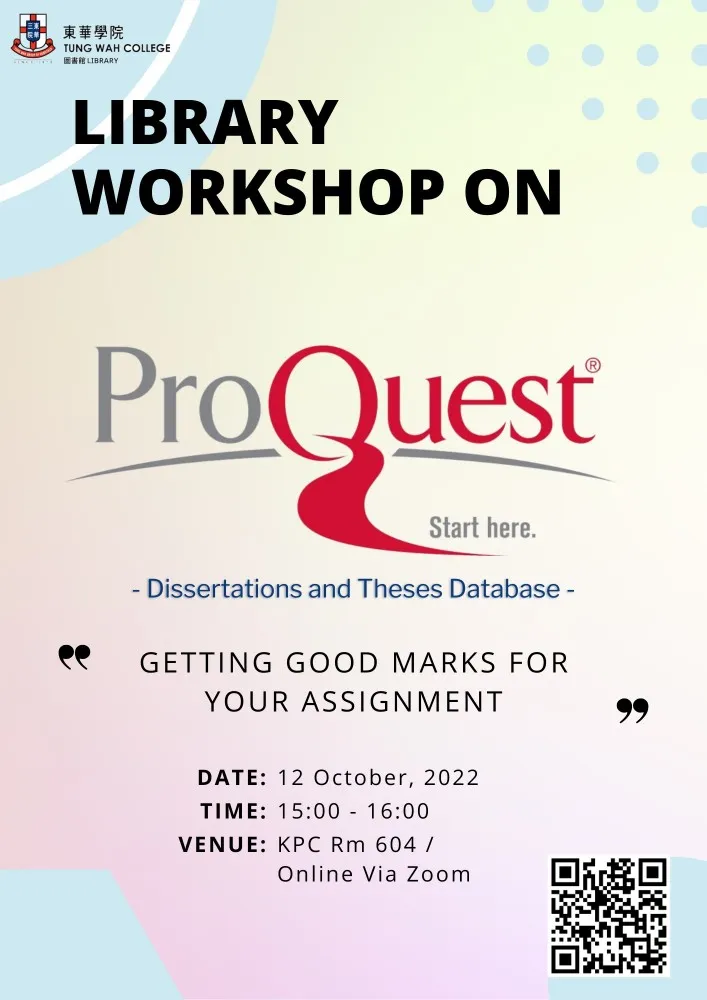 Interested in finding multidisciplinary eBooks? Or full-text dissertations and theses from around the world? Come and join our workshop on ProQuest platform, both face-to-face and online session available.