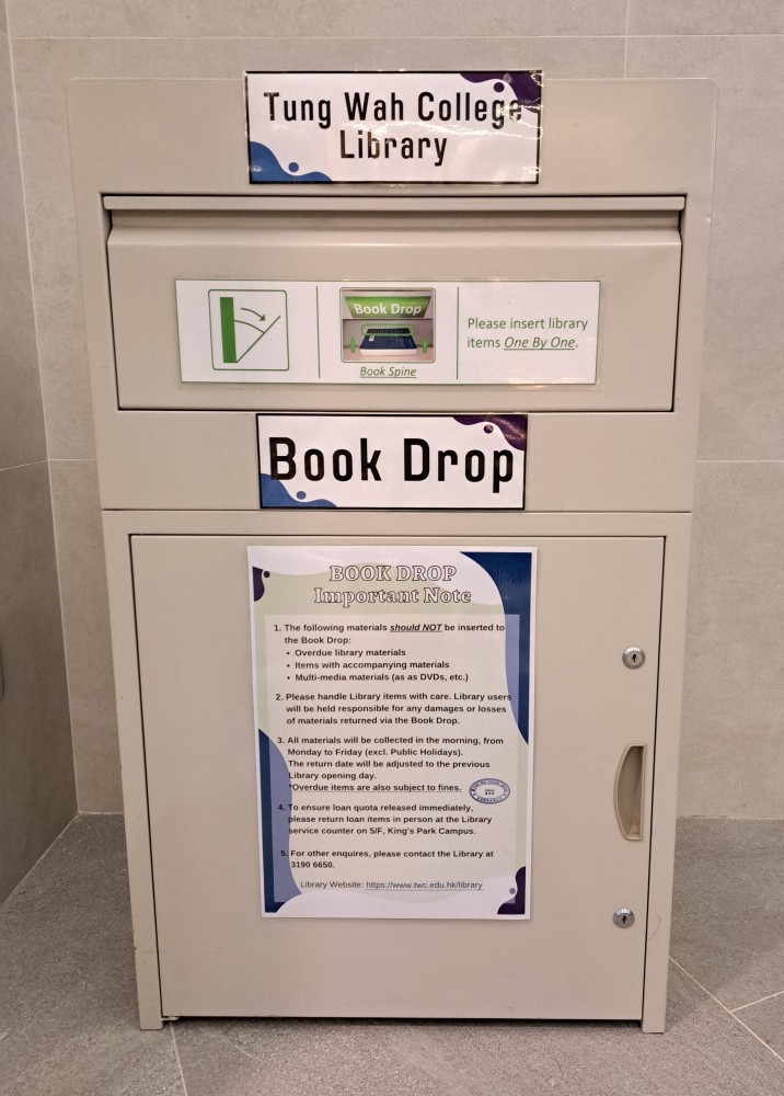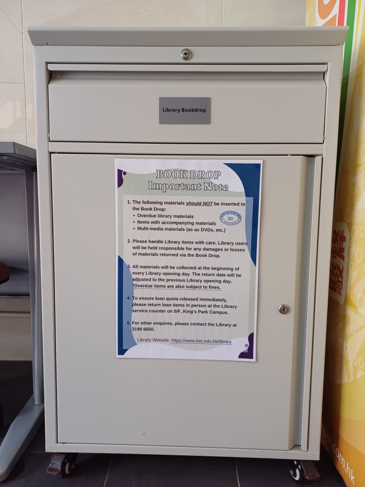 使用還書箱歸還時,請注意小心輕放。若書籍經還書箱歸還而引致任何損壞或遺失,圖書館概不負責。